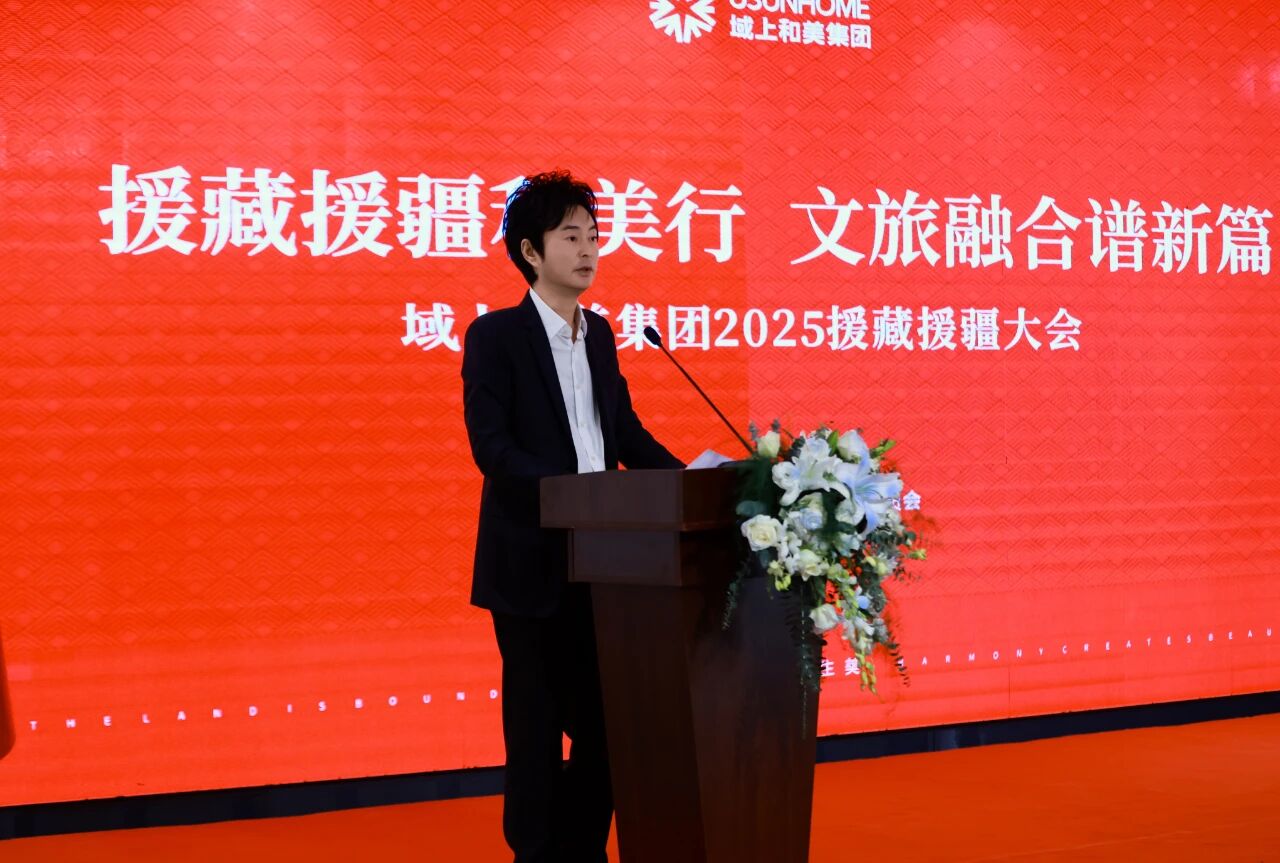 域上和美集团党委深入学习贯彻中央关于民族地区发展和乡村振兴的重要指示精神,不断增强党员干部的政治自觉与使命担当。2025年,集团党委组建第八批援藏团队与第三批援疆团队,以党建引领业务,以人才支撑产业,持续将“和美力量”注入祖国边疆。大会上,援藏援疆团队代表莫小刚作交流发言。他表示,团队将珍惜此次支援机遇,始终牢记初心使命,不负组织重托,充分发挥专业与团队优势,深入基层、扎根一线,在实干中锻炼成长,全力帮助群众就业增收,扎实推动当地特色文旅产业高质量发展。 李元媛总裁对援藏援疆工作作出深情展望与周密部署。她强调,全体和美员工当以赤子之心,赴山海之约;以专业之力,注振兴之势。要主动将事业的脉搏,融入边疆发展的壮阔征程,在促进文旅共生、乡土繁荣的生动实践中,切实为当地群众增进福祉、创造价值。