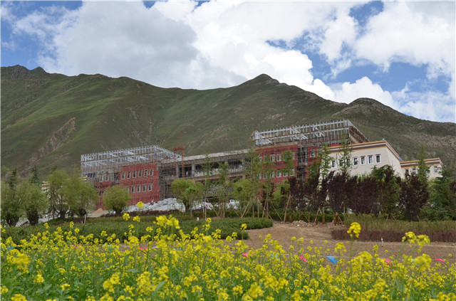 昨日下午,记者驱车来到位于城关区蔡公堂乡慈觉林村的中国西藏文化旅游创意园,刚驶入慈觉林便可以看到远处彭布山上显眼的《文成公主》主场馆,既有现代风格又不失藏民族特色的外装修,加上周围的各种绿树鲜花,让人不想走近探个究竟都难。