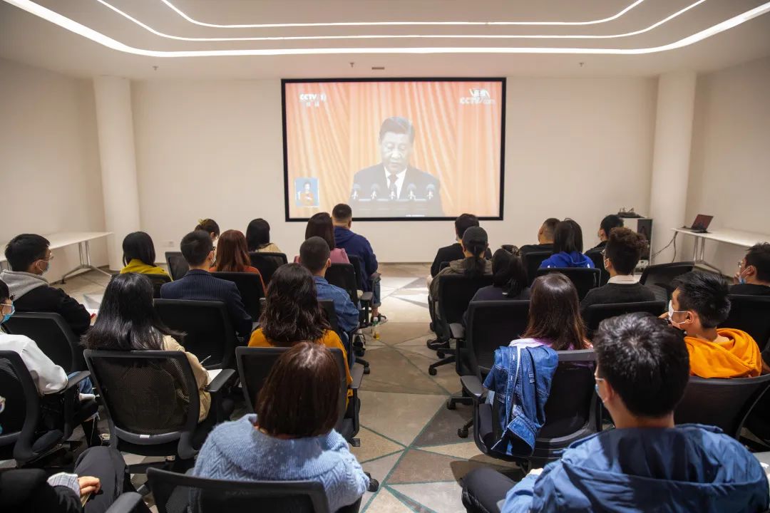 公司一线员工在成都新华坊街区收看大会直播