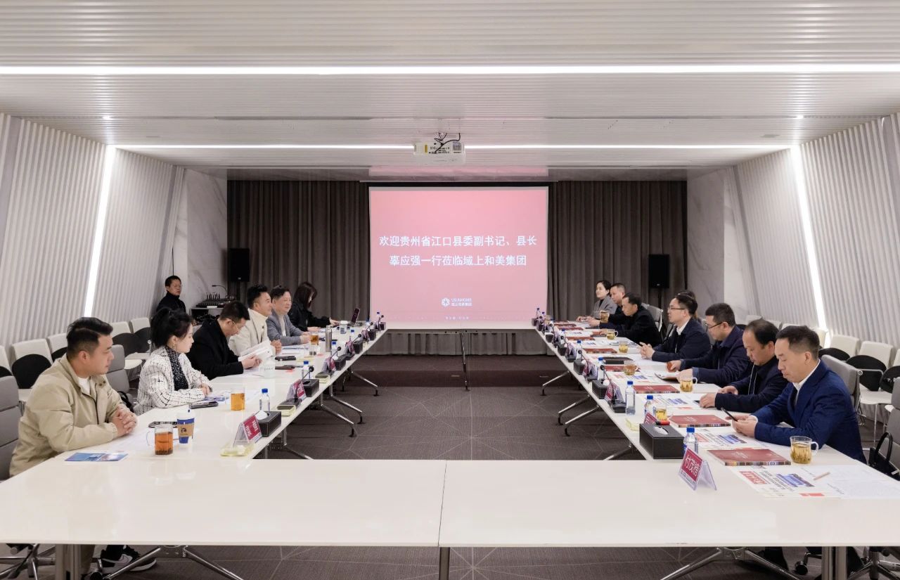 3月23日,贵州省铜仁市江口县委副书记、县长辜应强率队赴域上和美集团考察交流,贵州梵净山大健康医药产业示范园区管理委员会主任郭林,铜仁市投资促进局驻重庆招商分局局长陈玉陪同考察。双方就整合优势资源,推进务实合作等进行座谈交流。域上和美集团创始人、董事长邱伟,集团联合创始人、副董事长何平,集团副总裁吴伟,集团艺术总监李元媛等参加座谈。