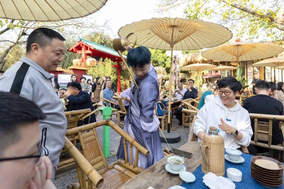 研修班一行对新华坊多个焕新业态进行了实地考察,并现场观赏了金钱板、变脸、茶艺等特色民俗文化表演,切身体验了“网红打卡地”——新华坊的人气与烟火气。