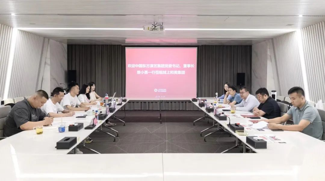 6月10日,中国东方演艺集团有限公司党委书记、董事长景小勇到访域上和美集团考察交流,东方演艺集团相关单位负责人陪同考察。域上和美集团创始人、董事长邱伟,集团联合创始人、副董事长何平,集团艺术总监李元媛等接待景小勇一行,双方进行座谈交流。