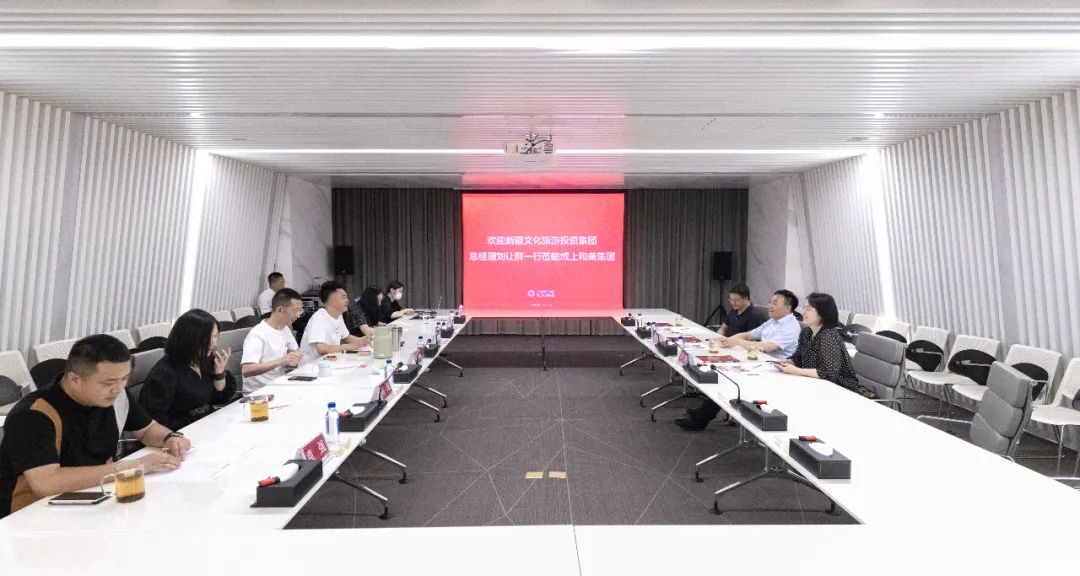 刘让群总经理对域上和美集团坚持文化自信自强、守正创新,致力传承弘扬中华优秀传统文化,以经典文旅作品讲好中国故事、传播中国声音所取得的卓著成绩予以高度评价。他表示,新疆拥有绝美的自然景观和璀璨的人文资源,文化旅游产业是促进新疆社会进步、文化繁荣、民族团结、稳疆固边的支柱产业,自治区各级党委政府高度重视文旅产业高质量发展和重大文旅产业项目推进实施。新疆文化旅游投资集团是新疆首个国有文旅龙头骨干企业,担负推进“文化润疆”“旅游兴疆”战略使命,致力打造重大文化旅游产业引领项目,期待与域上和美集团达成多领域深度合作,整合资源,优势互补,合作共赢,携手加快新疆优秀文化旅游资源转化为发展优势,推动擦亮“新疆是个好地方”金字招牌。