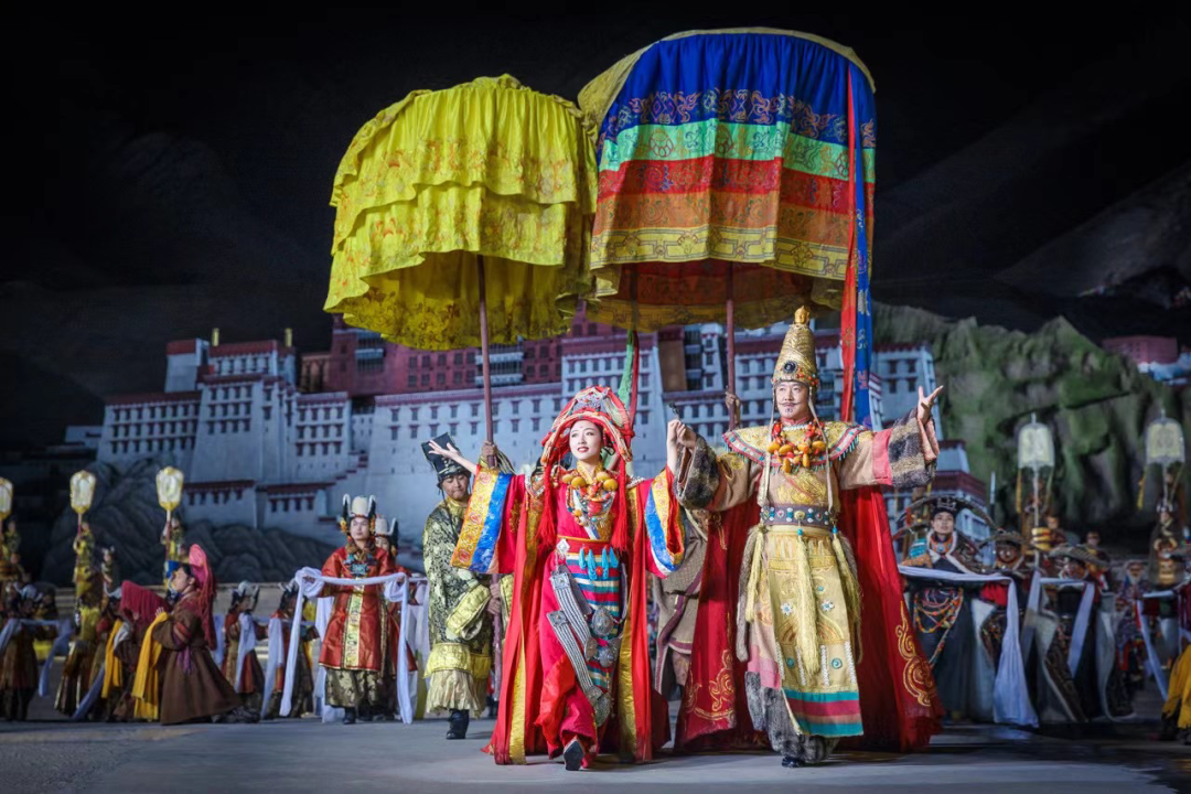 作为展现新西藏面貌的重要文化窗口,《文成公主》大型史诗剧以铸牢中华民族共同体意识为主旨,以中华璀璨历史文化为内容,宣传文成公主入藏和亲,促进民族交往交流交融的恢宏历史。在传承弘扬中华优秀传统文化的同时,推动了西藏文化旅游产业高质量发展,取得了显著的社会效益和经济效益。