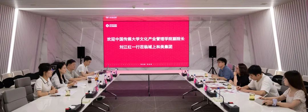 8月3日,中国传媒大学文化产业管理学院副院长、博士生导师刘江红一行到访域上和美集团调研,域上和美集团执行总裁李元媛、副总裁吴伟等接待调研组一行。双方举行座谈交流,共同探讨校企合作的新模式。