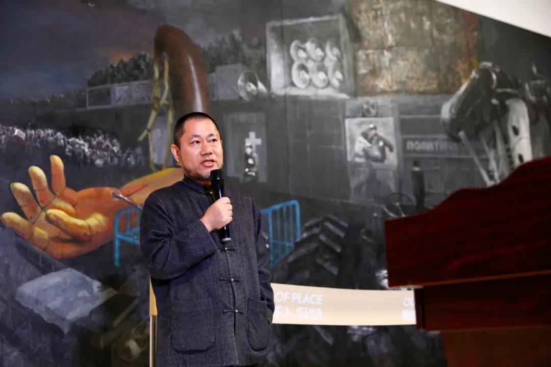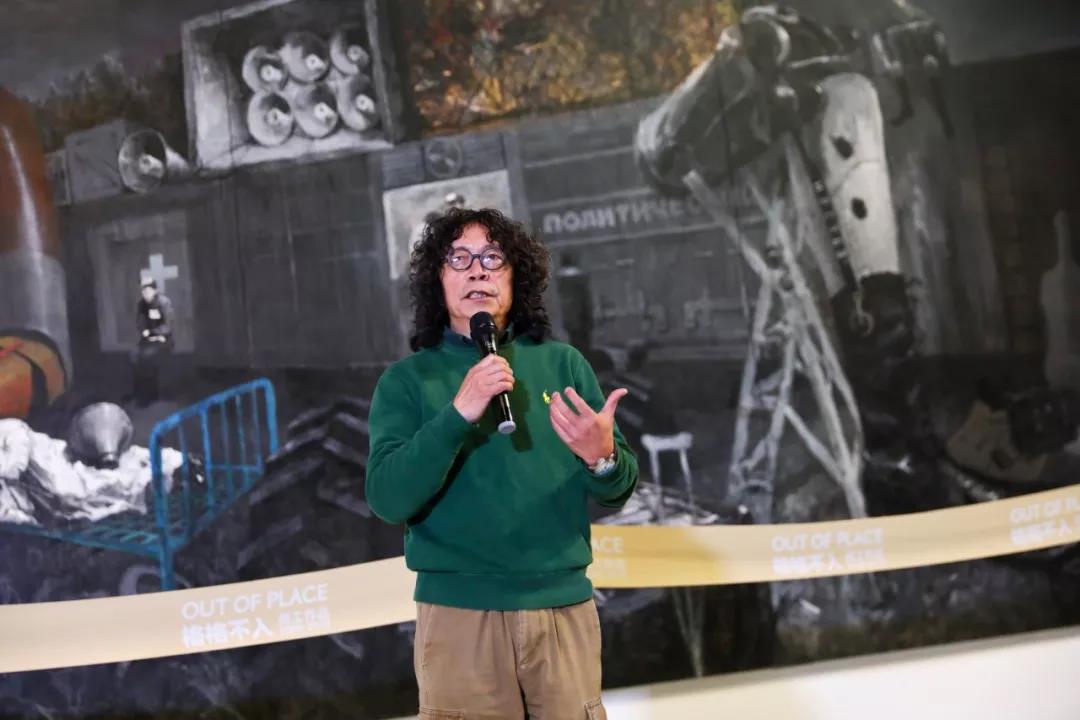 本次展览将从11月9日持续到12月8日,是何工近十年创作的一次阶段性展示。在1500平方米的展厅中集中呈现了具有宏大叙事和象征、隐喻意味的大型绘画、装置、影像等多媒介作品,分为“忧患的救赎”“潜置的图像”“文化的游牧”“目以重瞳”四个部分,还原到艺术创作之初,逼近人与社会、人与精神、与视觉语言,以及艺术与生存本源性的关系之中。展览题目取自爱德华•W•萨义德回忆录《格格不入》,意在表明何工“自我放逐”和“格格不入”的生存态度所导致的艺术创作的基本立场。