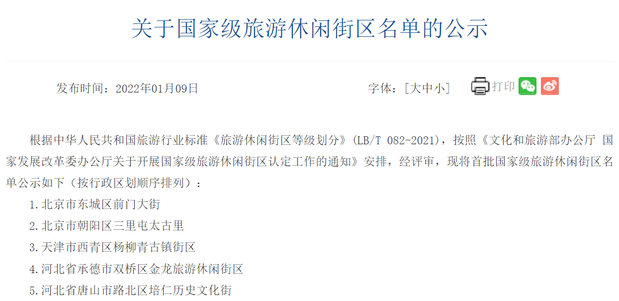 据了解,为落实“十四五”规划有关任务要求,打造一批文化特色鲜明的国家级旅游休闲街区,2021年11月,文化和旅游部、国家发展改革委开展了国家级旅游休闲街区认定工作。认定标准包括文化和旅游特色鲜明,文化资源、文化景观丰富;旅游休闲业态种类多样、形式创新;在全国具有较高的知名度和品牌影响力等标准。