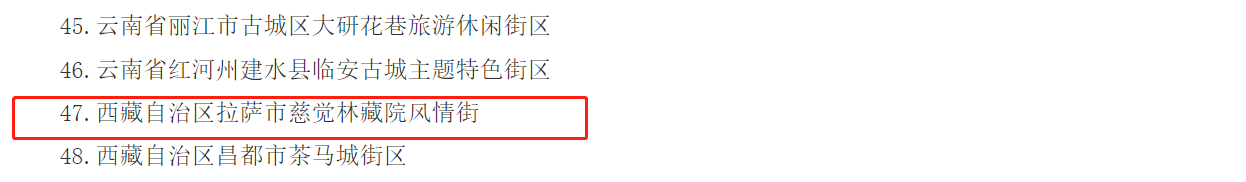 近日,文化和旅游部办公厅发布首批国家级旅游休闲街区公示名单,“西藏自治区拉萨市慈觉林藏院风情街”作为拉萨市唯一入选街区,跻身该名单。